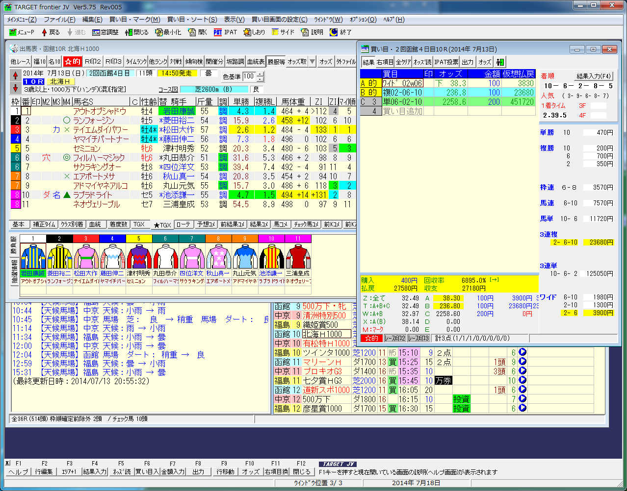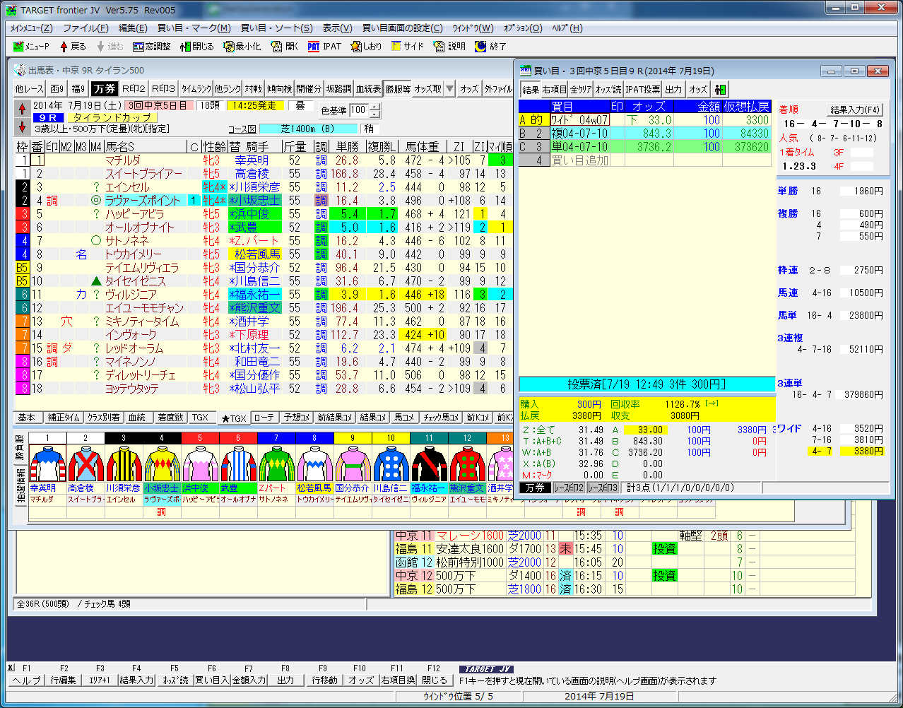 先週の日曜日に今年初めての中央での万馬券が取れました^^;